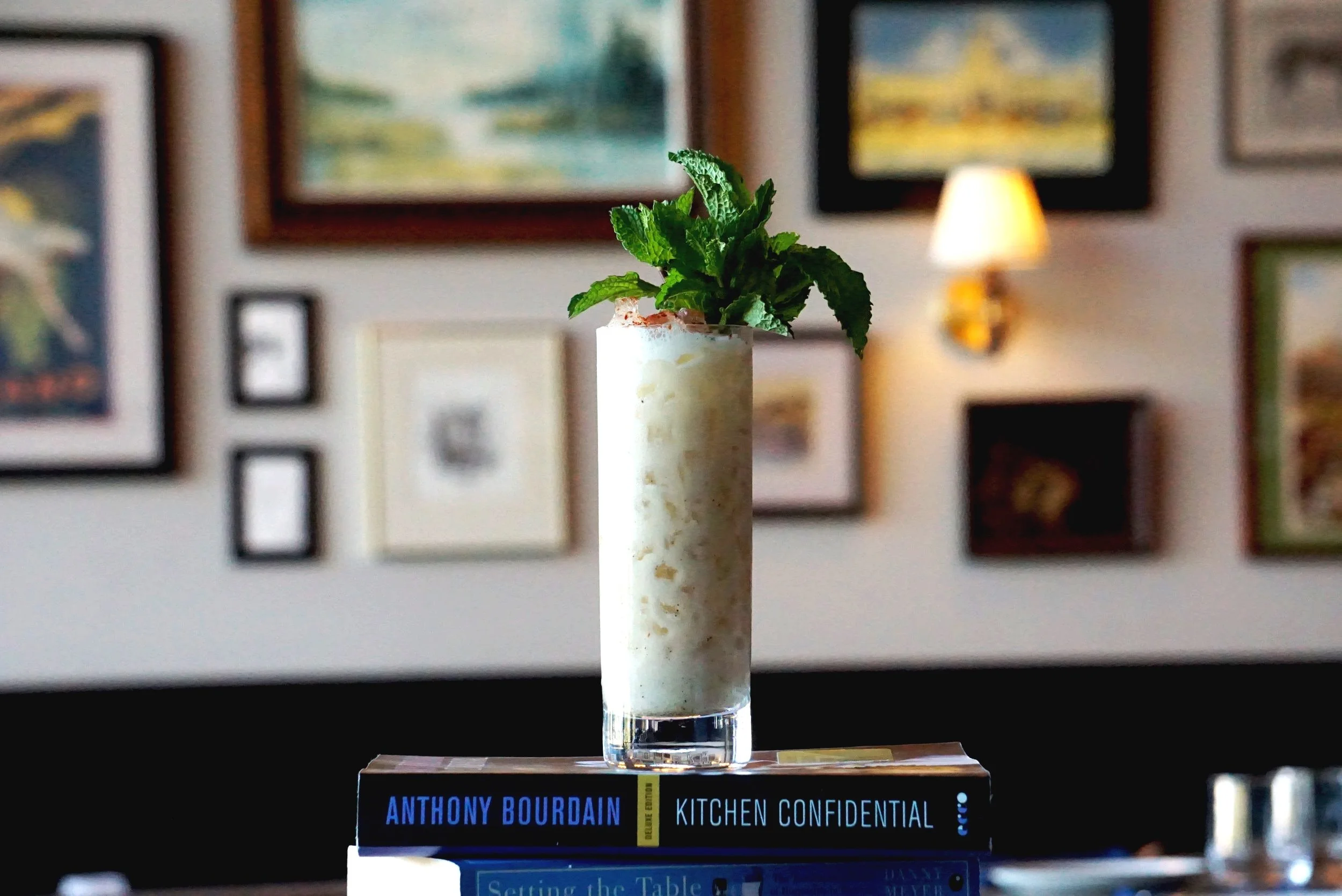 FREEZER DOOR MARTINI: gin, vermouth, olive oil, salty things